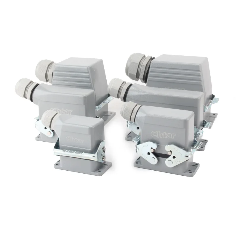 Odolné 24-kolíkové AG Heavy Duty konektory navrhnuté a vyrobené spoločnosťou CHTAR sú vhodné pre 24-kolíkové HE, HD, HEE, HDD a iné vysokovýkonné konektory. Konektor je vyrobený z hliníkovej zliatiny a potiahnutý sivým práškom RAL7037. Jeho prevádzkový prúd je 16A, prevádzkové napätie je 500VAC, rozsah prevádzkovej teploty je -40℃ až +125℃ (-40℉ až +257℉), cykly zapojenia a odpojenia sú 500-krát a stupeň ochrany je IP65.
