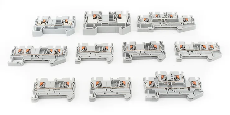 Napájacie svorkovnice DIN (séria PT) sú navrhnuté pre veľkoobjemové moderné inštalácie, kde je prvoradá rýchlosť kabeláže, náklady na prácu a dlhodobá spoľahlivosť. Vynikajú v štandardnom priemyselnom a stavebnom prostredí. Napájacie svorkovnice typu push in din sa používajú v sériovo vyrábaných priemyselných ovládacích paneloch a skriniach, automatizácii budov a systémoch HVAC, výrobe komerčných zariadení atď.
