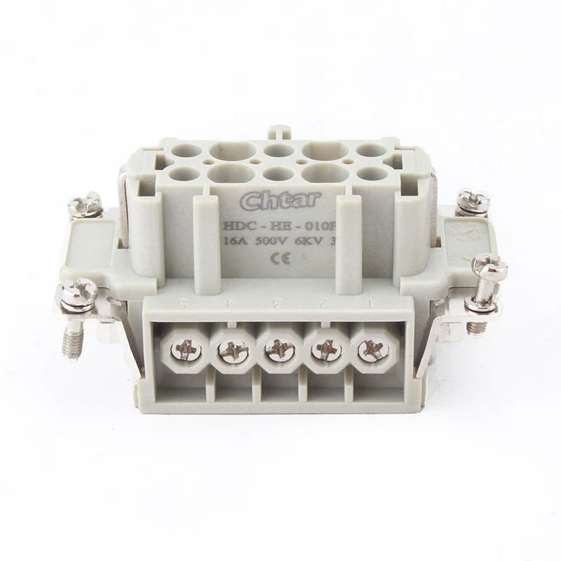 Odolný 10kolíkový konektor CHTAR M/F sa používa v spojení s krytom H10B vysokovýkonného konektora. Má 10 pinov a je pripojený 10 vodičmi. Sú vyrobené z vysokopevnostného PC a vo vnútri majú mosadzné postriebrené kolíky. Tešíme sa, že sa staneme vaším dôveryhodným dlhodobým partnerom v Číne.