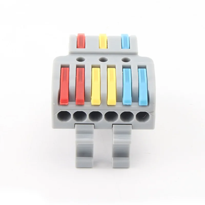 CHTAR 4 mm2Rýchlospojky na spojovacie drôty typu Multi-In Multi-Out DIN Rail sú vyrobené z materiálu krytu PC triedy UL94 V0, vodivý je vyrobený z medi T2 s pocínovaním a pružina je vyrobená z S301. Môže byť pripojený 0,5-2,5 mm2mäkké drôty a 0,5-4mm2pevné drôty, poskytoval široké veľkosti drôtov na výber práce. Dá sa dobre pripojiť pomocou 2 vodičov dovnútra a 4 vodičov von, ako dve samostatné káblové spojenia. Môžeme vyrobiť inú farbu alebo kryt a páky podľa výberu zákazníka. Spojovacie rýchlospojky drôtov možno ľahko odstrániť a znova pripojiť.
