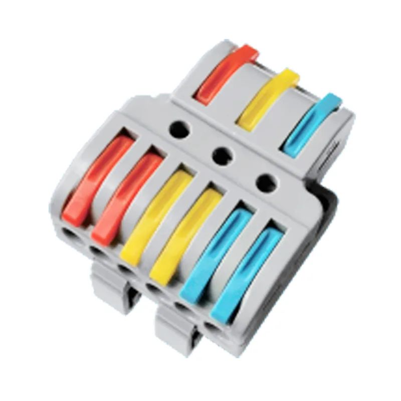 4 mm2Rýchlospojky na spojovacie drôty s viacerými vstupmi a viacerými výstupmi typu DIN Rail sa široko používajú na pripojenie vodičov v priemyselných oblastiach a osvetľovacích systémoch. Rýchle drôtové konektory sú efektívnym produktom, škrupina montáže dinovej koľajnice ju podporuje dobre fungujúcou v elektrickom paneli, voľný spoj navrhnutý tak, aby pomohol elektrikárom ušetriť značný čas na inštaláciu na mieste.